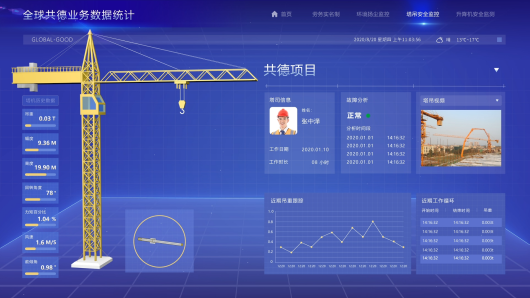 根据现场参数数据,以动画的方式实时模拟塔吊的信息: